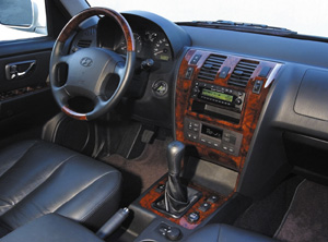 Der Innenraum unterscheidet sich deutlich vom äußeren Erscheinungs-bild. An Luxus fehlt es sicherlich nicht: die Lederbestuhlung, das teils in Leder und teils in Holz gehüllte Lenkrad und die übersichtlichen Armaturen brauchen den Vergleich mit europäischen Fahrzeugen nicht zu scheuen.