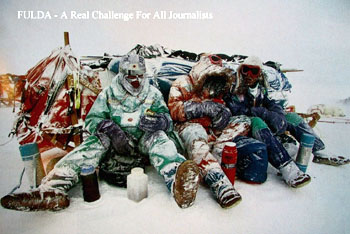 War dies noch nicht genug, so wartete nach vollbrachter Tat auf die Teilnehmer ein ganz besonders „eisiges“ Vergnügen: Zeltaufbau in der Wildnis und anschließende Übernachtung bei –25° C.