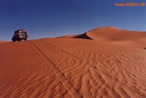 Auf dem Weg zum Um El Ma in Libyen kamen wir bei sehr weichen Sandverhältnissen nur mit allergrößten Mühen über die Dünen. Der 2.5er LR Sauger in meinem 109er tat sein bestes, aber war leistungsmässig an seiner Grenze.