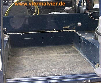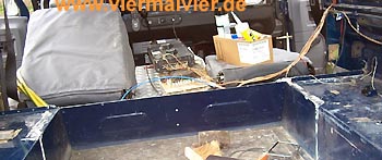 Aber nun auf zur Montage, beziehungsweise der Demontage. Der hintere Bereich des Fahrzeuges wird komplett ausgeräumt ( Sitze, Seitenverkleidung, Teppich falls vorhanden).