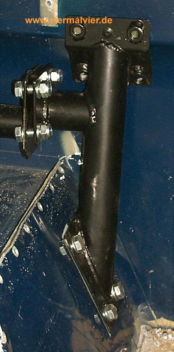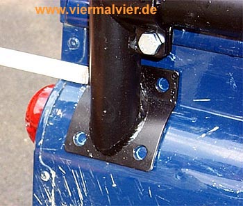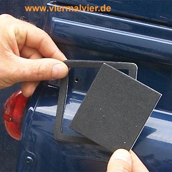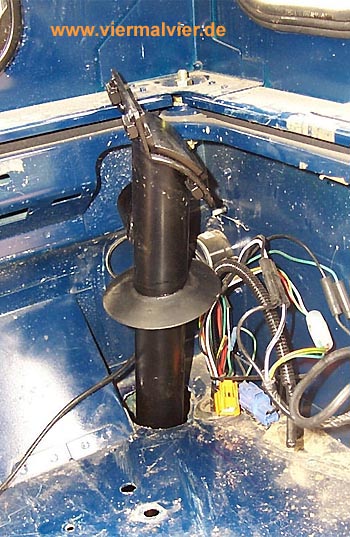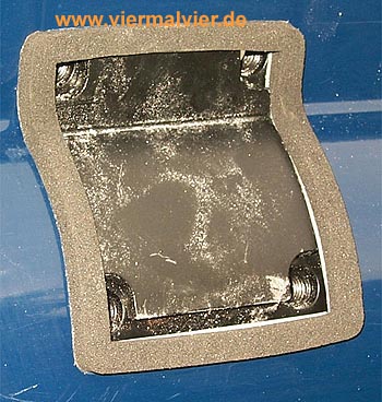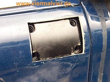 Vor der endgültigen Montage des Trägerrohres nicht vergessen die Gummidichtung drüber zu stülpen! Doch nun wird das Rohr vorerst wieder entfernt und wir machen das Loch in der Aussenhaut. Die mitgelieferte Dichtung besteht aus 2 Teilen. Der innere Teil wird auf der Karosserie geklebt.