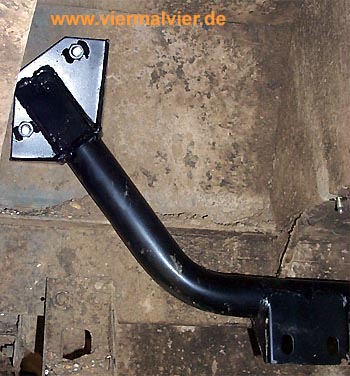 Der mitgelieferte Stahlwinkel wird an dem Chassisausleger befestigt. Bei mir war ein wenig Fummlerei angesagt, weil der Winkel und die Mantec site Protektoren an der gleichen Schraube (Spritzwand / Chassisausleger) befestigt sind.