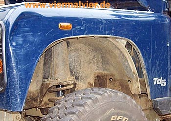 Die Kunstoffverbreiterungen demontieren. Die Beule ist aus Cherimont und nicht von der Montage 🙂