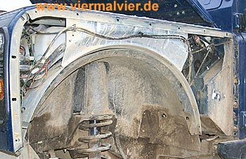 Die Streben im Kotflügel für die Gurtbefestigungen hinten werden ebenfalls demontiert.