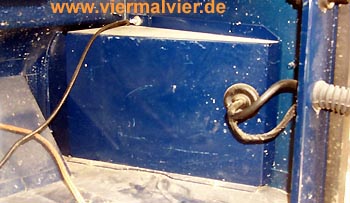 Anschliessend wird das Trägerrohr zur Probe angesetzt und eventuell das Loch noch nachbearbeitet. Wie in der Bauanleitung beschrieben, muss das Loch ein wenig oval sein, damit das Trägerrohr hineinpasst. Wie Ihr sehen könnt, ist das Loch sauber ausgetrennt mittels Meissel.