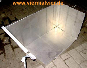 Die Konstruktion stammt von Peter, von dem ich auch die Kisten bekommen habe. Bei Bedarf kann er Weitere fertigen lassen. Die Kisten sind aus ca. 1,5 mm Aluminiumblechen gefertigt, wobei als Außen- und Oberseite jeweils die Fahrzeugkarosserie genutzt wird.