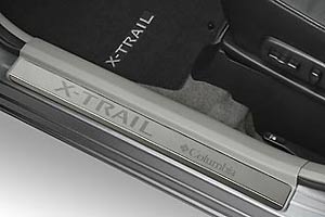 Edelstahl-Einstiegsleisten mit Columbia-Schriftzug. Der X-TRAIL