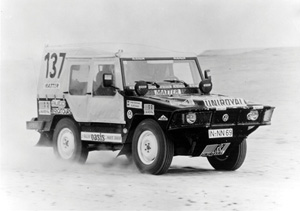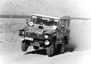Ein Viertel Jahrhundert ist es inzwischen her, als die berühmte Rallye Dakar 1979 zum ersten Mal ausgetragen wurde. Wenn Volkswagen im Januar 2004 mit dem neuen Race-Touareg zur 26. Auflage der härtesten Rallye der Welt antritt, hat die hoch entwickelte Rohrrahmen-Konstruktion mit Kohlefaser-Karosserie einzig das Volkswagen Emblem im Kühlergrill mit jenem Auto gemein, mit dem die Marke anno 1980 einen souveränen Doppelsieg bei dem Afrika-Marathon feierte. Mit diesem Erfolg bewies der mit Allradantrieb und Differentialsperren an beiden Achsen ausgestattete Geländewagen eindrucksvoll seine konstruktive Reife und Zuverlässigkeit und bereitete das Terrain für die Allradkonzepte quattro® von Audi und Syncro von Volkswagen.