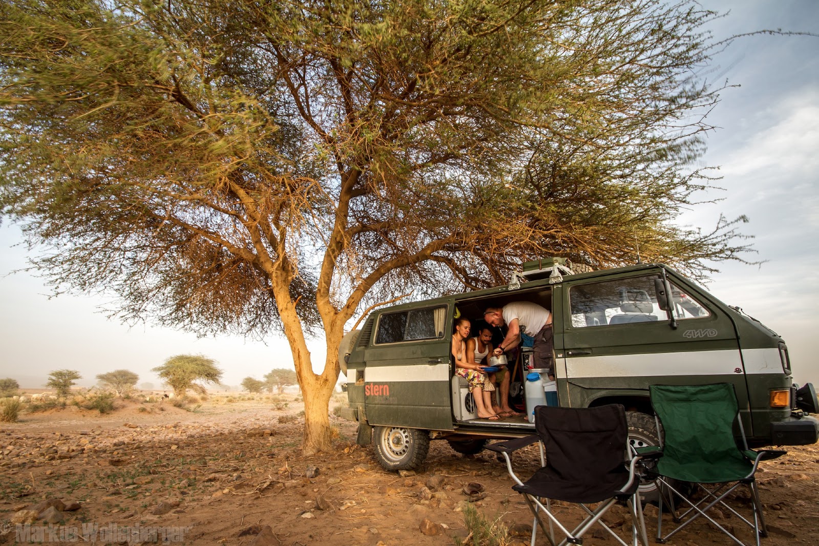 hallo harry, wie wäre es einfach mit einem oder mehreren streifen die du aufklebst? der syncro hier hat es auch so gemacht: http://4.bp.blogspot.com/-uk5OASnfksg/UWpwAyHg3lI/AAAAAAAAC3g/KJC00lDLifs/s1600/Mhamid+Camp6.jpgganz so eng sieht man das in marokko auch nicht mehr... war auch schon mit meinem sandfarbenem bus damals unten, was dort ja eher eine tarnfarbe ist  auf dem rückweg haben wir auch einen grünen pinzi getroffen die auch 3 monate ohne probleme unterwegs waren. wenn du noch infos oder material zu marokko brauchst einfach per pm melden. waren ja erst 7 wochen unten. grüße, markus